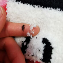 There were some gray threads on the beige part, but they just stuck and easily cleaned. They are so soft