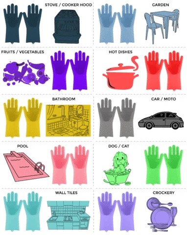 We bring you a new way of taking the cleanliness of our home. A more hygienic and comfortable way with which you can also save space and money because our Magic Silicone Washing Sponge Gloves replace brushes, sponges, scouring pads, and other gloves in a safer way for you and your family.