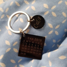 This keychain is a stainless steel disc charm. The Purpose of the calendar is to engrave a special day or month that marked a beautiful moment in your heart that stays a souvenir. It is a wonderful way to remember the special date of an anniversary, birthday, wedding, the day you got your dog, the month you met your boyfriend or girlfriend, even a first date or a kiss.